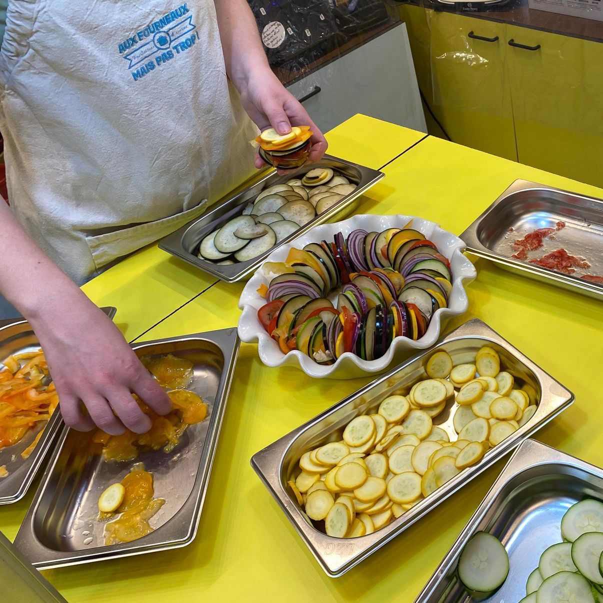Chacun repart avec pleins de souvenirs de ce moment convivial partagé et ses préparations dans des contenants prêtés ou apportés et les recettes. On peut aussi rester déguster sur place comme au restaurant selon les formules.